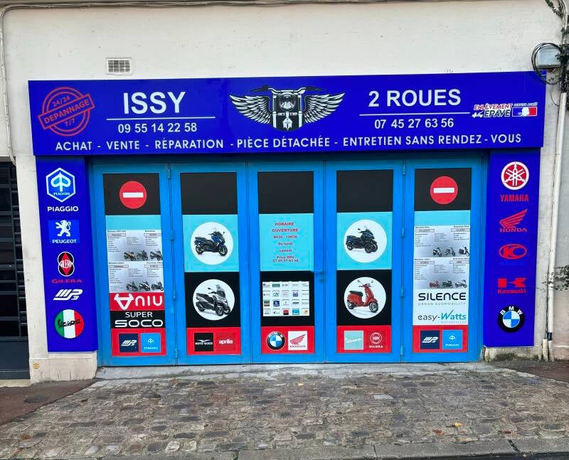 Nous sommes fiers de vous accueillir dans notre garage de scooter à Issy les Moulineaux. Chez Issy 2 roues, nous mettons à votre disposition notre expertise et notre passion pour les deux-roues. Que vous ayez besoin d'un entretien, de réparations ou de conseils, notre équipe est là pour vous servir. Découvrez notre gamme de services et laissez-nous prendre soin de votre scooter.